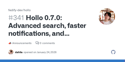 arrow-up15arrow-down1external-linkHollo 0.7.0: Advanced search, faster notifications, and improved client compatibilityplus-squaregithub.com洪 民憙 (Hong Minhee)@lemmy.mlEnglish · 18 days agomessage-square0linkfedilink