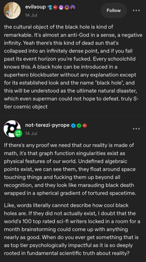 black holes seem pretty comprehensible to me? like there’s a lot of math and programming that’s way harder to wrap your head around