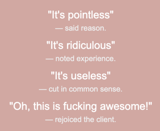 arrow-up1176arrow-down1imageCommon sense vs the clientlemmy.mlcm0002@lemmy.world to Programmer Humor@programming.dev · 1 month agomessage-square5linkfedilink
