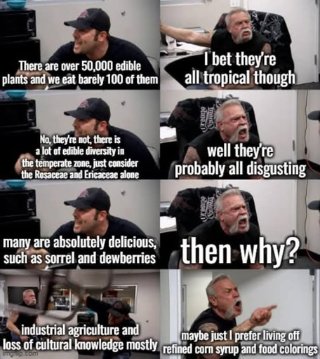 My point wasn’t that commercial farming is bad. With 8 billion people on the planet, it’s a necessity. My point was simply that scavenging to supplant your needs should be more encouraged, and the knowledge should be passed down.