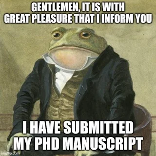 My thesis is still in a next to finished draft state but I am a perfectionist who ran out of time so my boss was like, just fix it for the post defence submission.