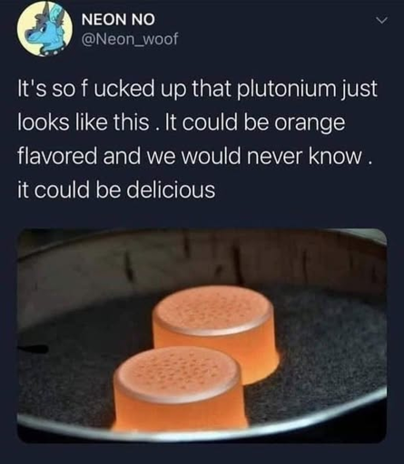 Fun fact: there’s enough calories in a single gram of plutonium to sustain a person for 10,000,000 years.