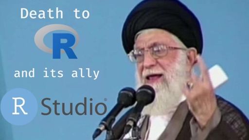 Comparing R and RStudio to Israel and USA is mean. But meme still funny.