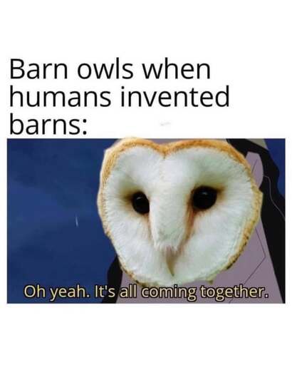 Before humans invented barns, barn owls were actually called “bar nowls”. They were a type of nowl that lived in bars. It wasn’t until barns were invented that they changed species and changed into owls.