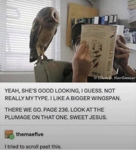 minus-squareAda@piefed.blahaj.zonelinkfedilinkEnglisharrow-up14·22 days agoPage 236 is Terns. I mean, if that’s what you’re in to…